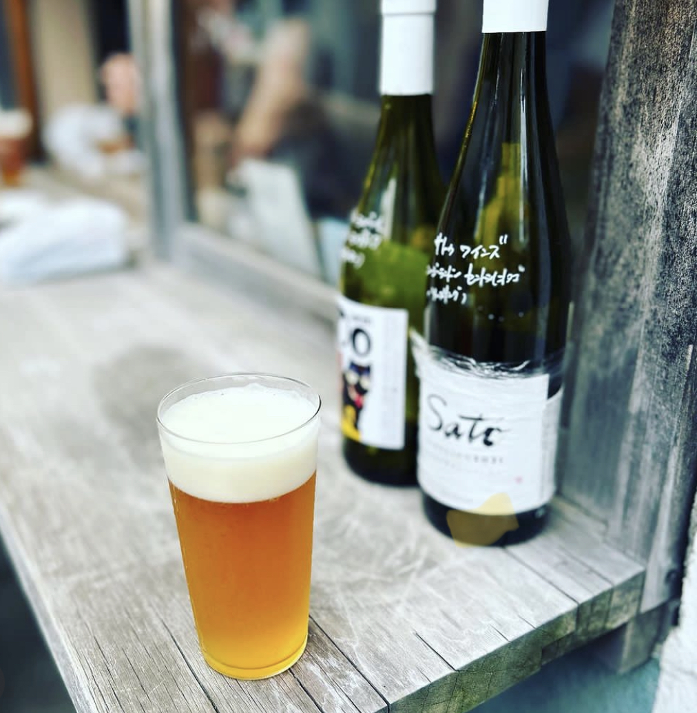 名山町の街のかど、小さな建物の青い壁の窓から暖かな灯りが漏れたらオープンの合図。県内産の旨い食材を知り尽くした店主が腕をふるう料理とナチュラルワインが自慢だったこの店に、最近新たな名物として加わったのが自家醸造のクラフトビール。こんなローカルなビールを待ってました!と今夜も乾杯。